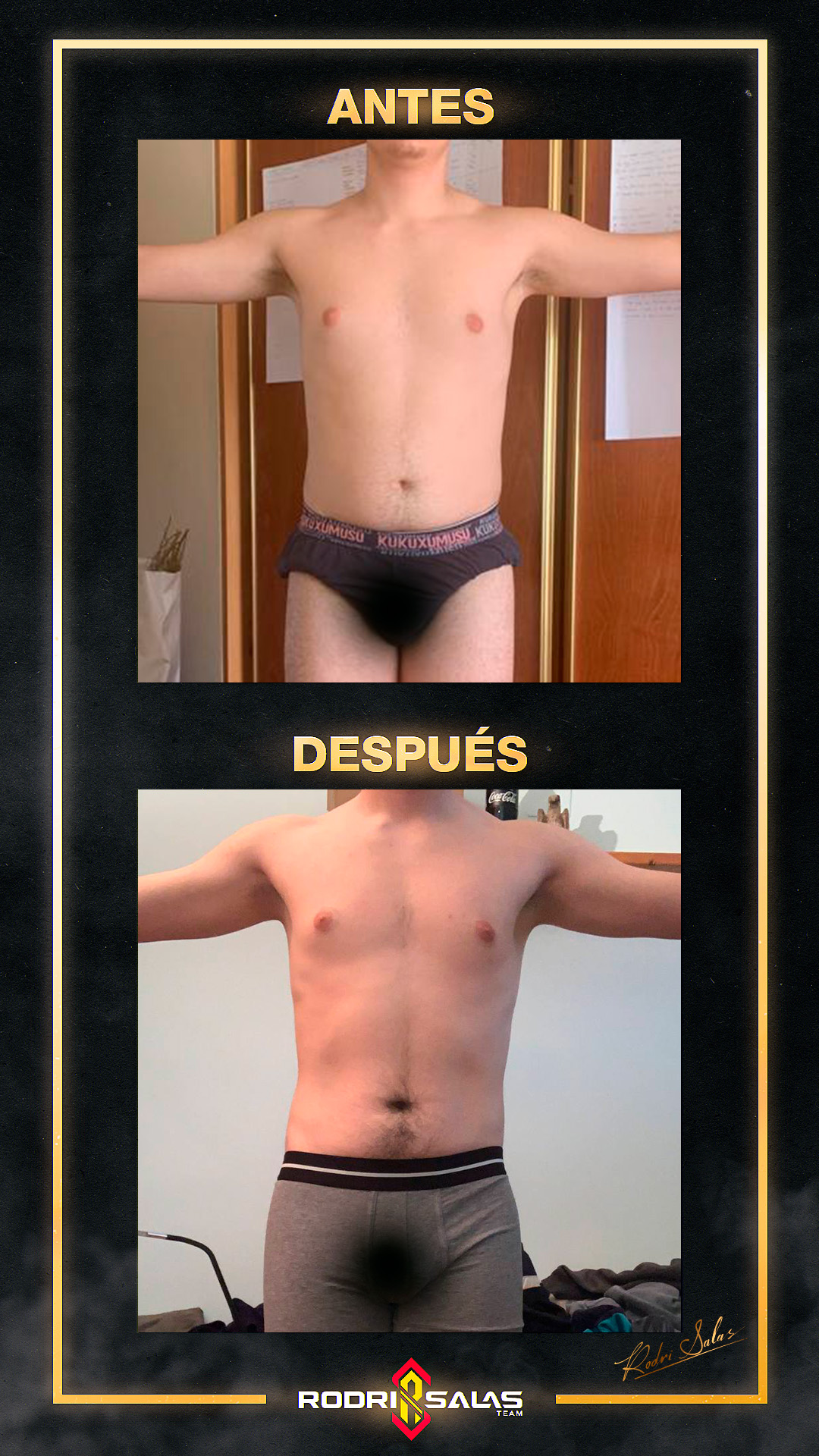Aunque yo siempre he tenido desparpajo y he sabido hablar con las mujeres, no estaba a gusto con mi propio físico, y eso siempre se acaba transmitiendo de una u otra forma. Cuando contraté el programa, pesaba 61kg. Dos años después, puedes ver en la foto, peso 83. Parece que fue ayer cuando contraté y fue en 2021. Es increíble lo que se puede conseguir en dos años de trabajo guiado.